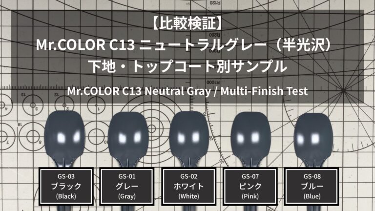 上記5色の下地の上に、Mr.COLOR C14 ネイビーブルー(半光沢)を塗布して隠ぺい力や発色の確認を行い、