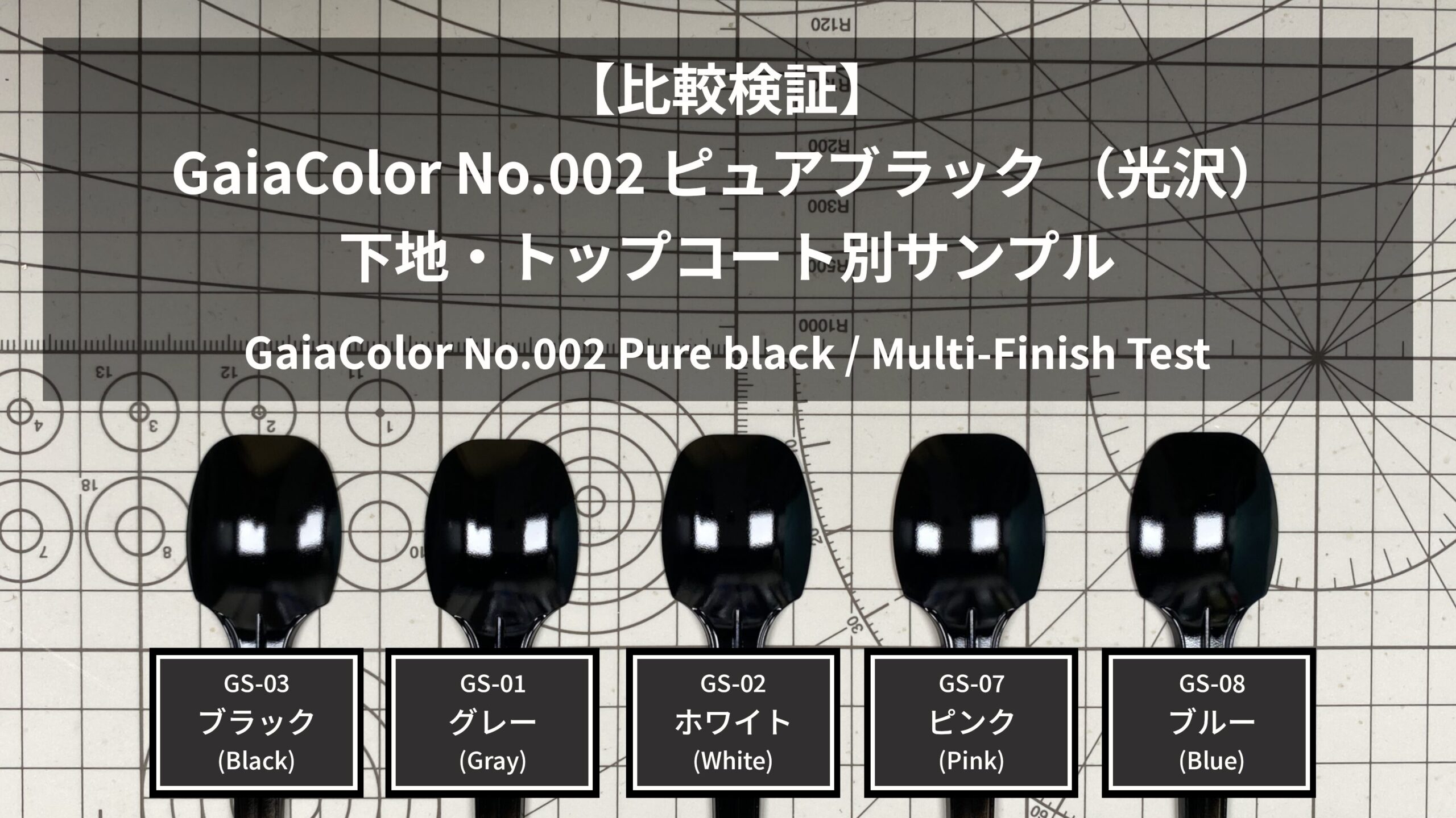 【塗装比較】ガイアカラー 002 ピュアブラック(gaianotes)|下地・トップコート別サンプル