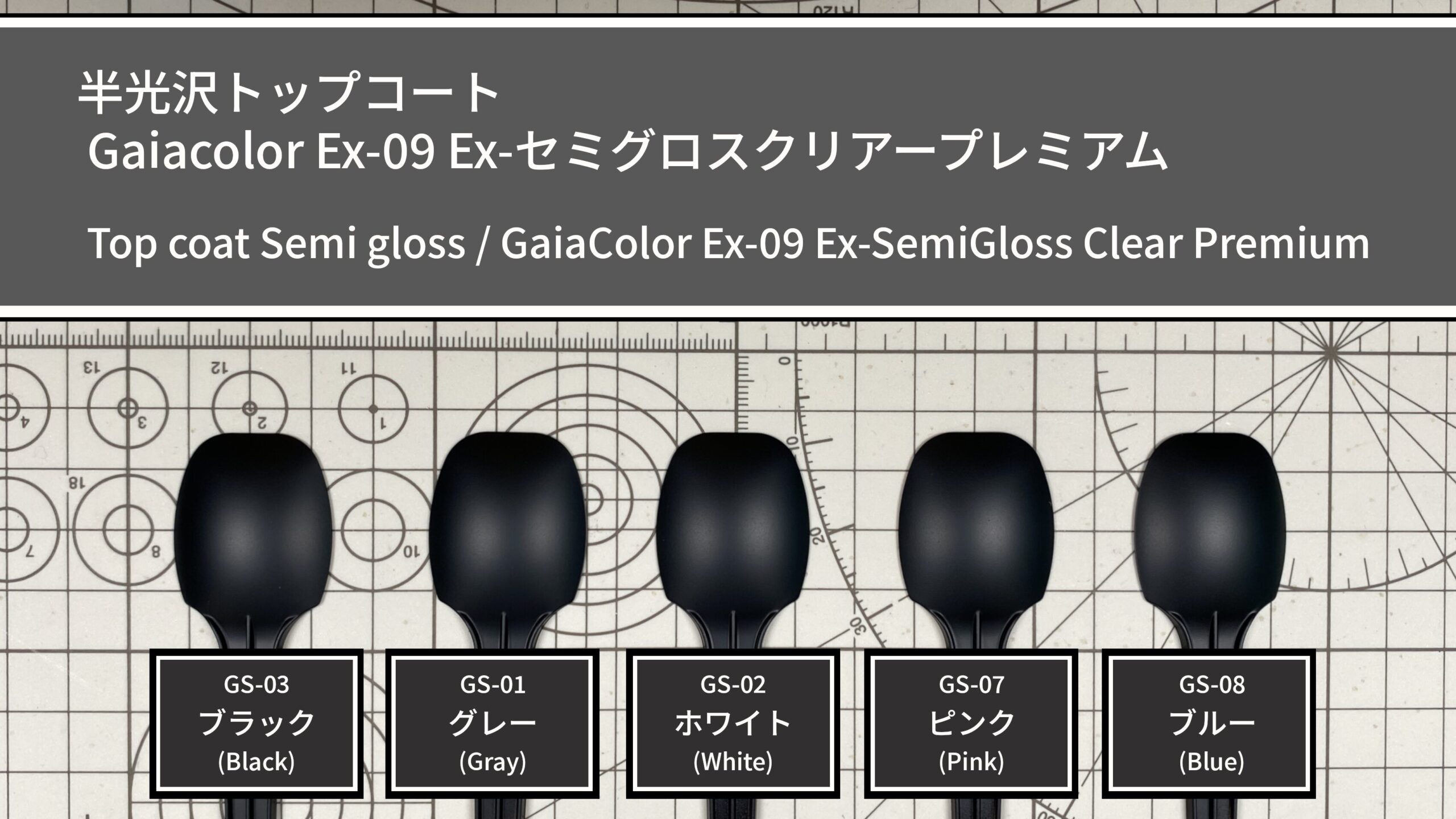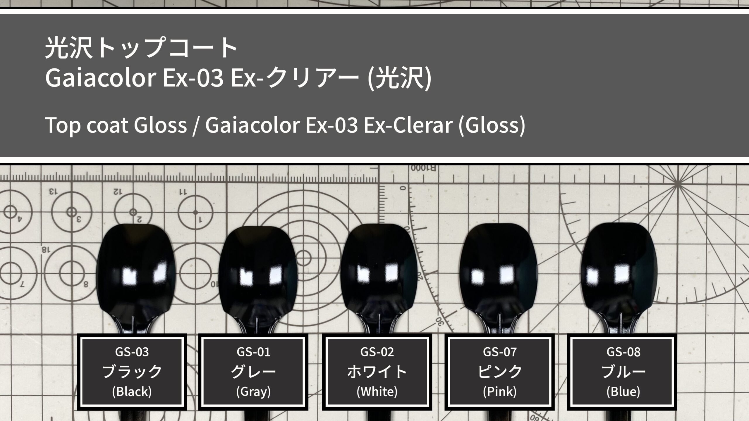 【塗装比較】ガイアカラー 002 ピュアブラック(gaianotes)|下地・トップコート別サンプル