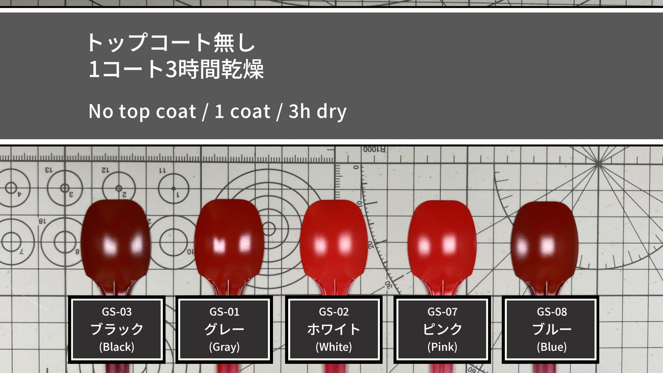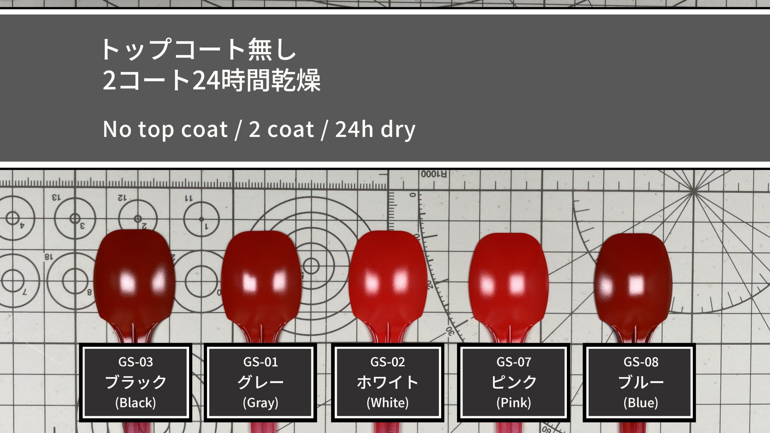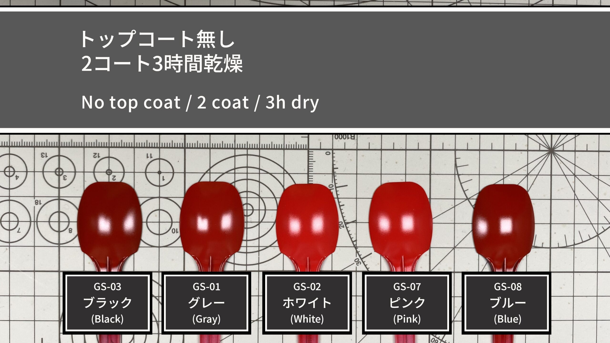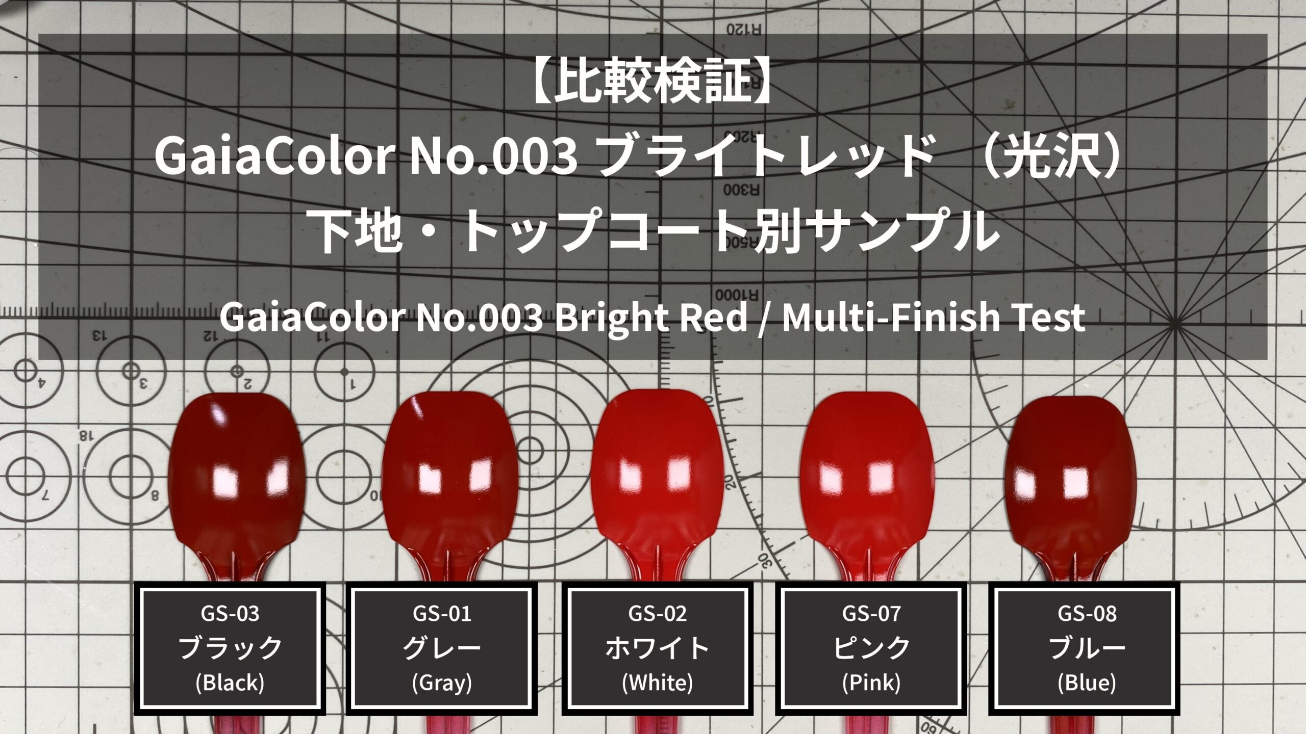 【塗装比較】ガイアカラー 003 ブライトレッド(gaianotes)|下地・トップコート別サンプル