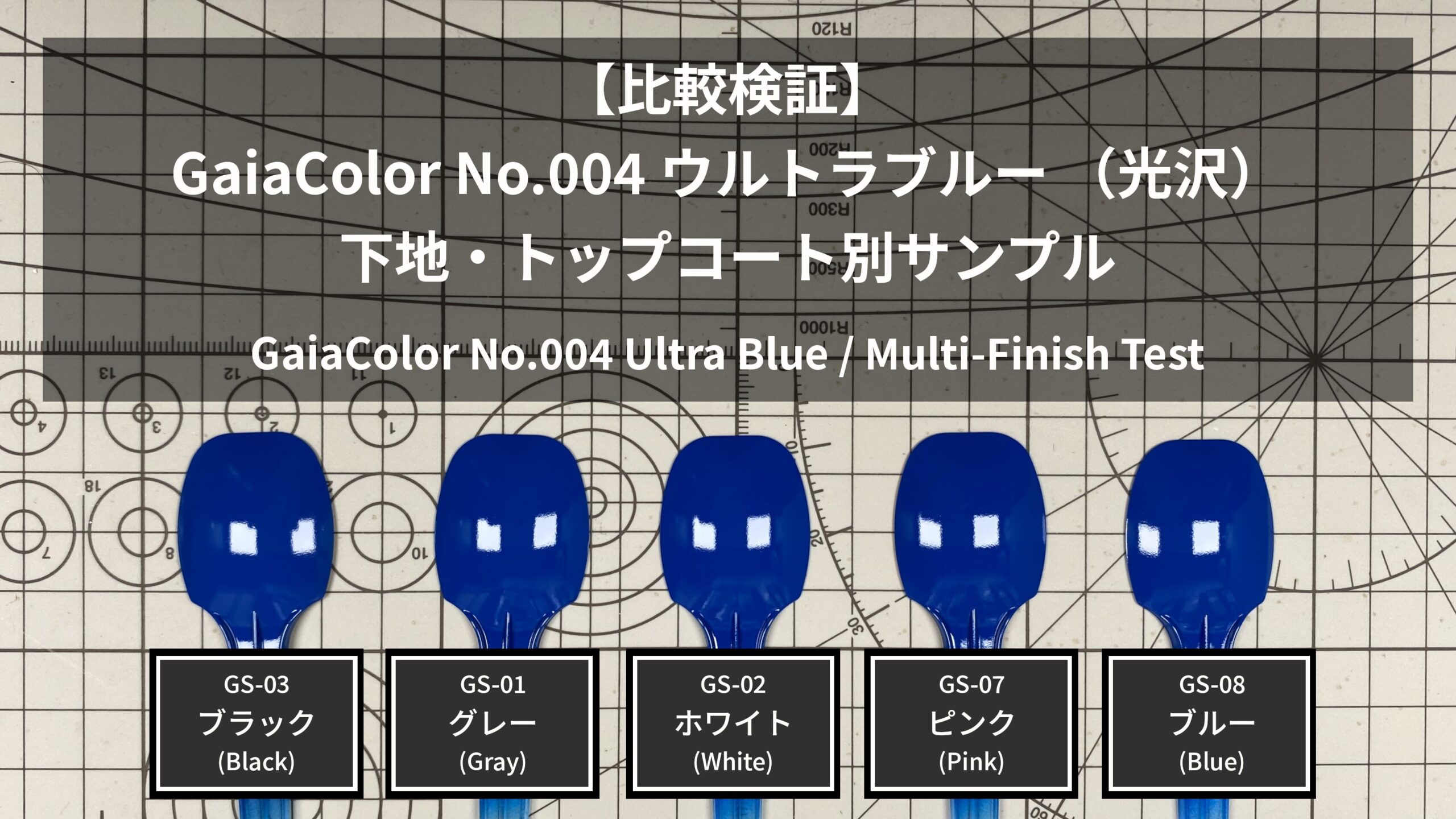 【塗装比較】ガイアカラー 004 ウルトラブルー(gaianotes)|下地・トップコート別サンプル
