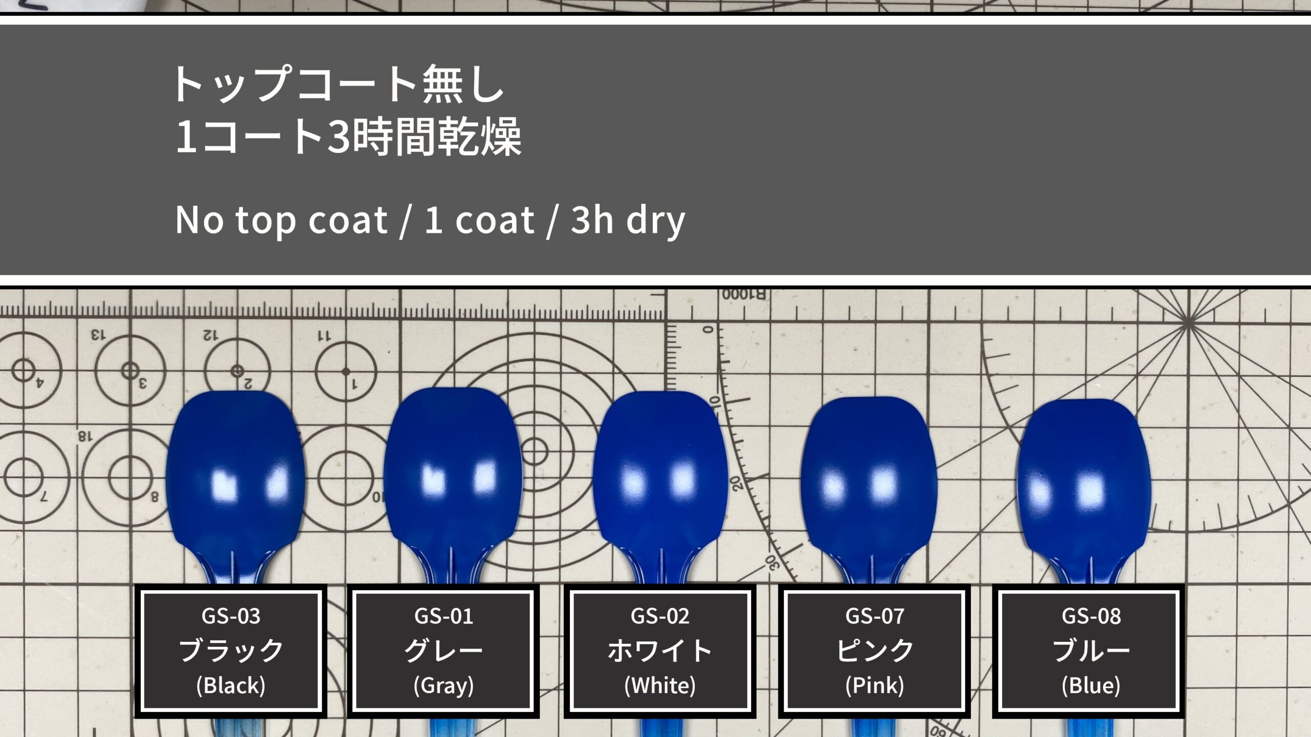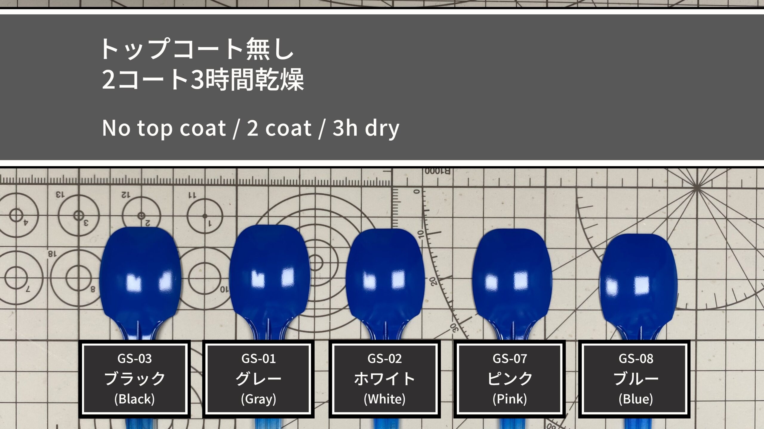【塗装比較】ガイアカラー 004 ウルトラブルー(gaianotes)|下地・トップコート別サンプル