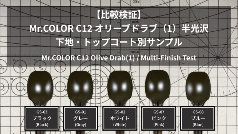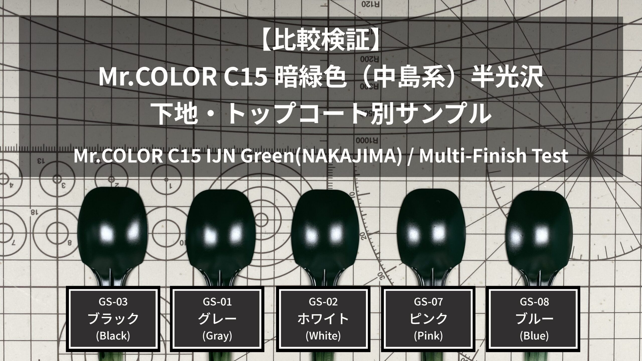 【塗装比較】Mr.カラー C15 暗緑色(中島系)(Mr.COLOR)|下地・トップコート別サンプル