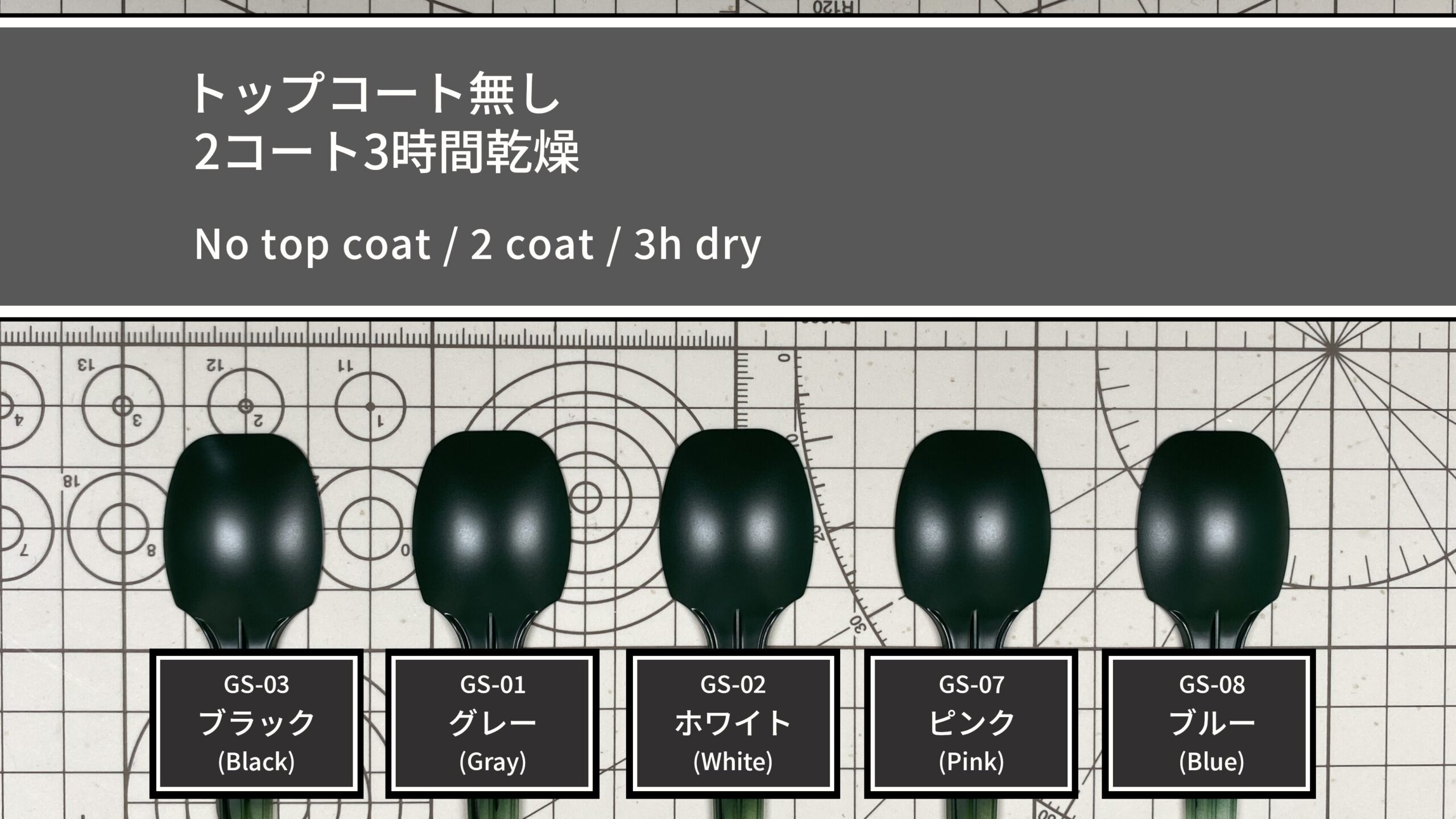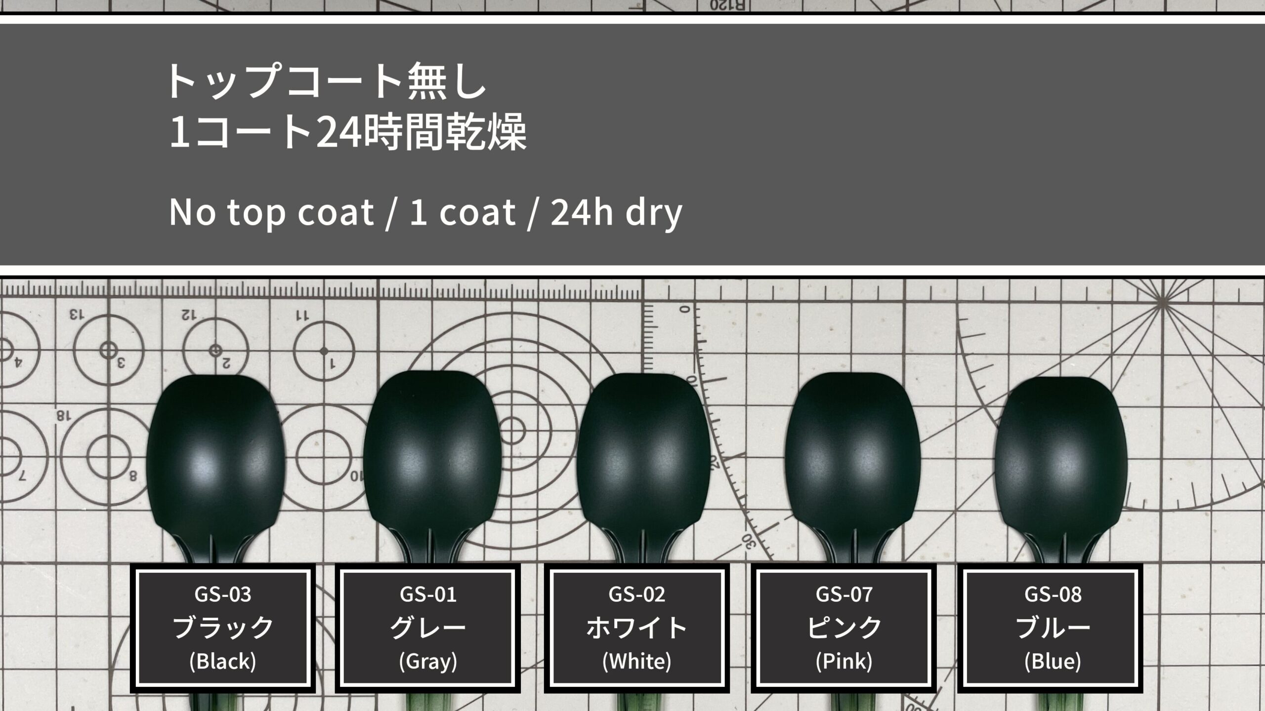 5種類の下地色に塗装 → [光沢/半光沢/つや消し]でトップを重ねて、
