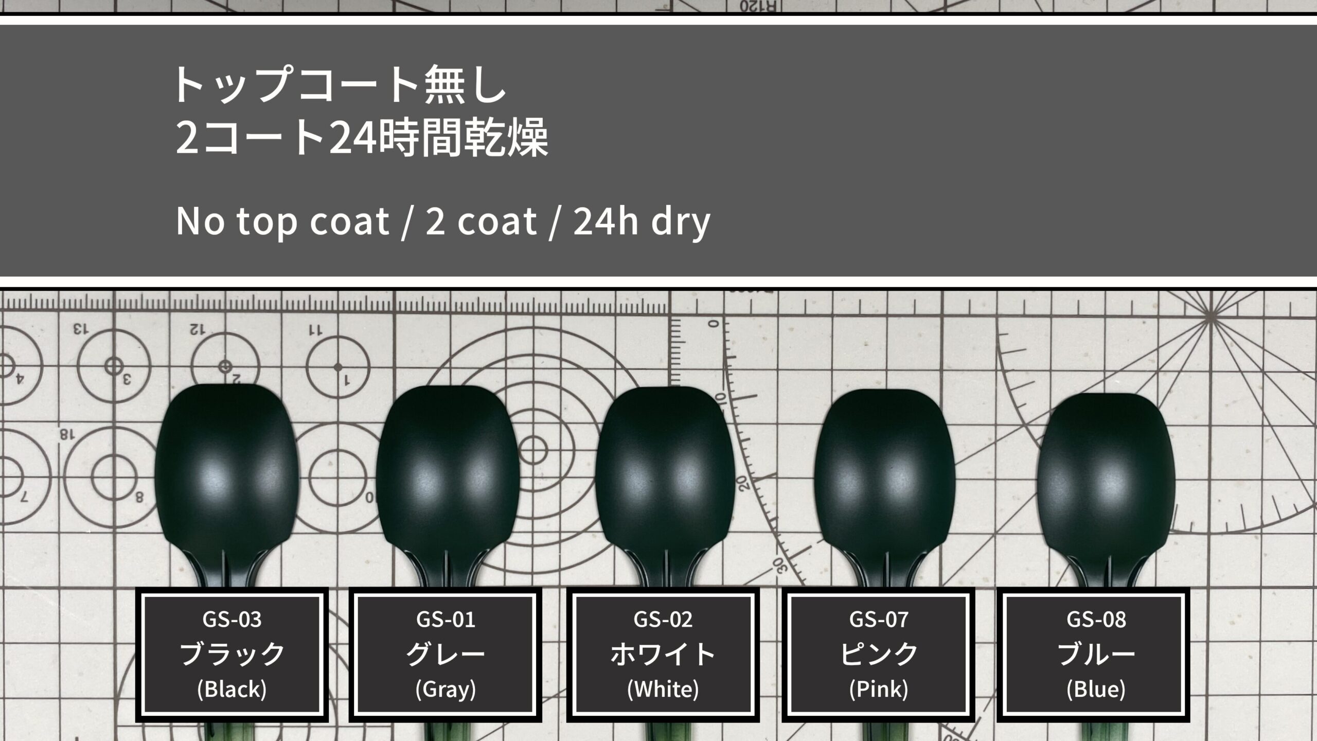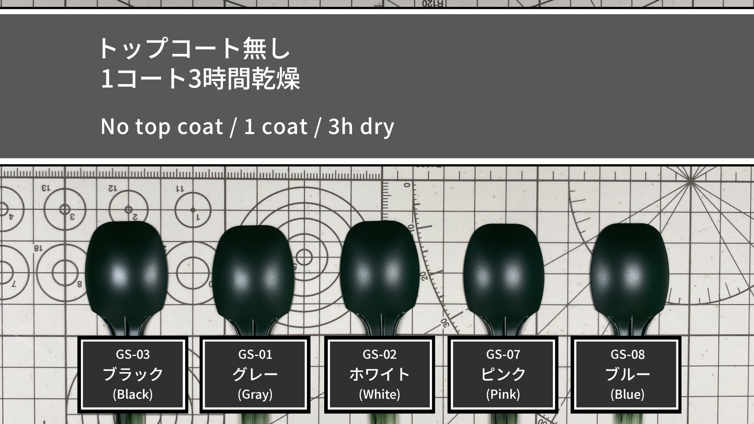 下地は1コートですが、サンプルには透明スプーンを使用しているため透け感が出やすく、作業効率を重視して両面塗装で透けを軽減しています。